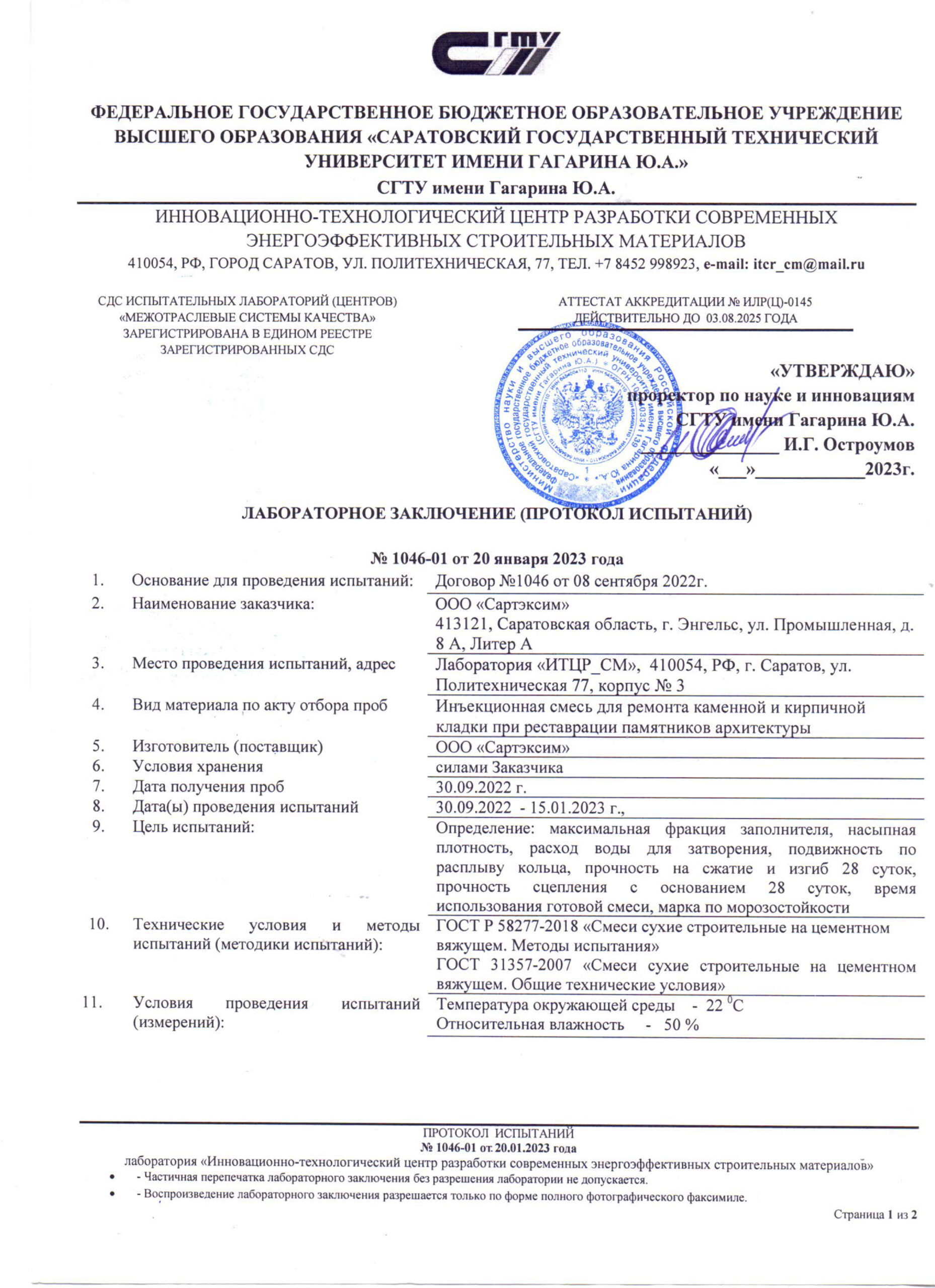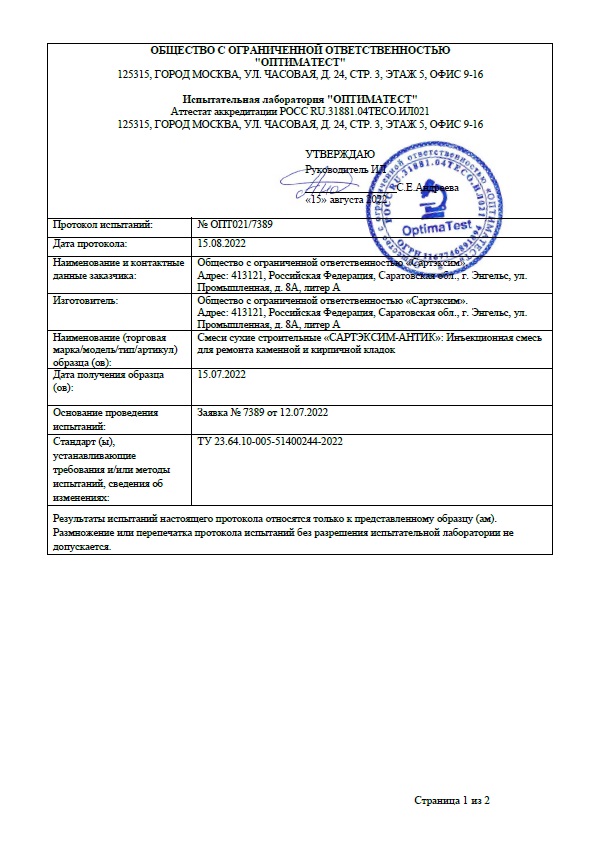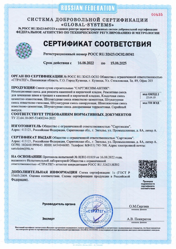 Система реставрационных смесей «САРТЭКСИМ-АНТИК»